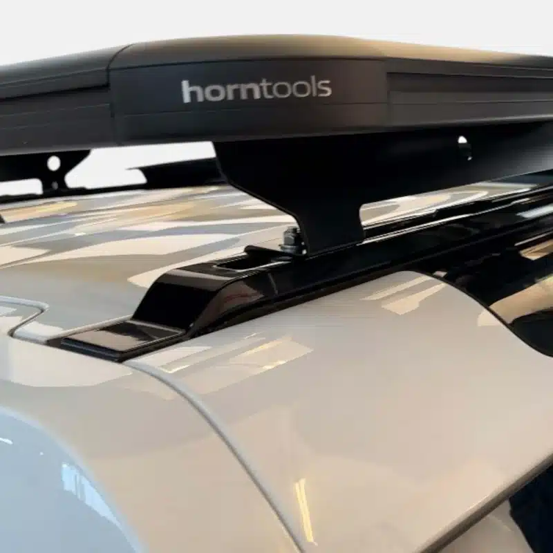 Der horntools ExRoof Dachträger ist speziell für den Land Rover Defender 110 mit OEM-Dachreling ab 2020 entwickelt. Die pulverbeschichtete Aluminiumkonstruktion (6063) kombiniert Leichtigkeit mit hoher Stabilität. Die Montage erfolgt unkompliziert auf der C-Rail OEM, ganz ohne Bohren.