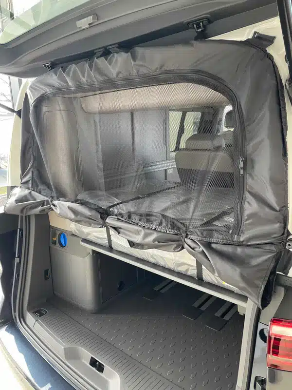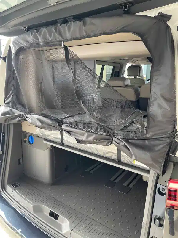 More comfort, more protection, more freedom: this high-quality mosquito net for the rear tailgate of the VW T7 Multivan and California is much more than just insect protection. It combines functionality, flexibility, and smart design – perfect for camping, vanlife, and outdoor adventures.