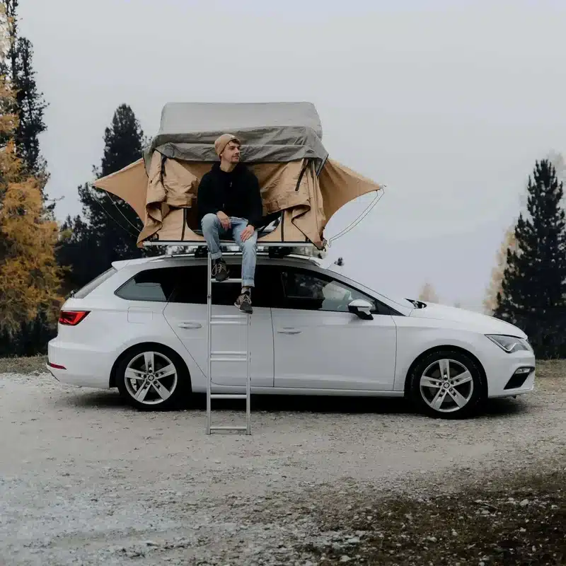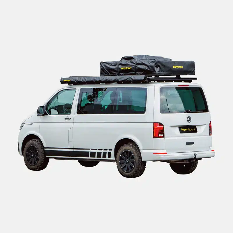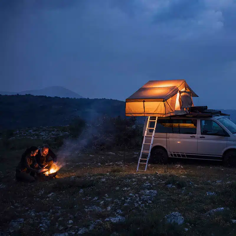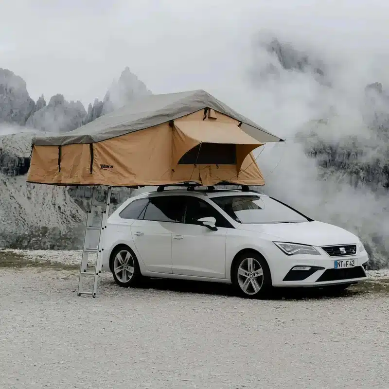 Whether on a Van, pickup, SUV, station wagon or trailer, this roof tent allows independent travel even on narrow mountain roads or in small towns. Depending on the version, you can choose between a model with or without an annex veranda to adapt the living space to your needs.