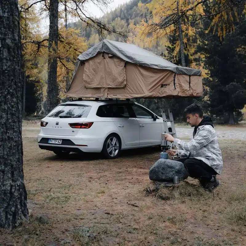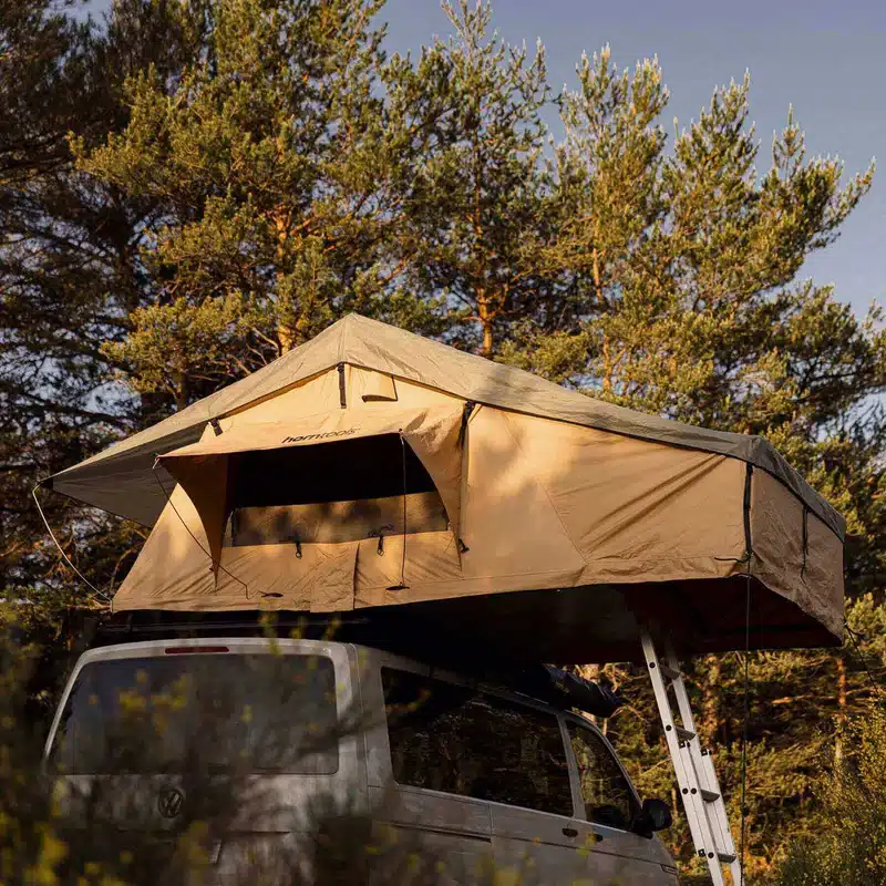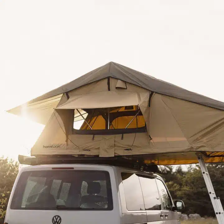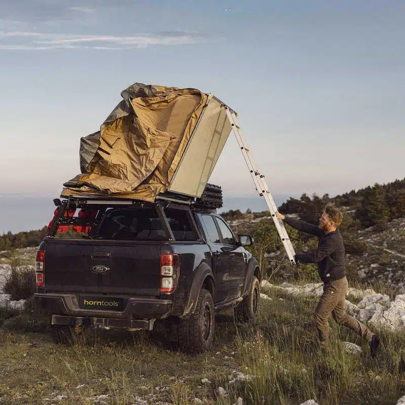 The roof tent – Horntools Desert – 220 cm for 4 people is the ideal solution for anyone who wants to combine maximum travel freedom with high comfort.