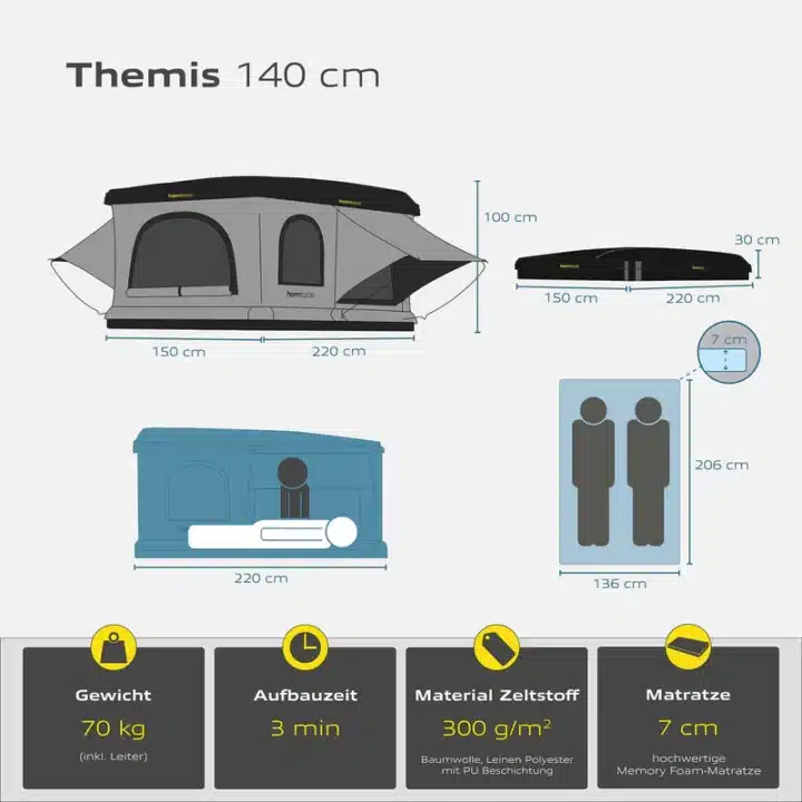 1 × Themis roof tent with hard shell