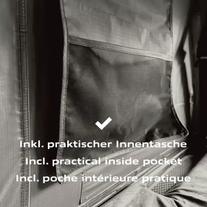 The side fabric with a 2,000 mm water column keeps the interior dry even in bad weather.