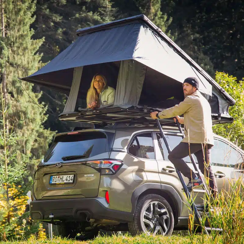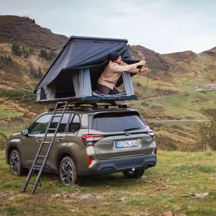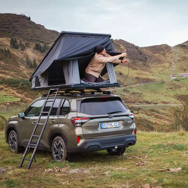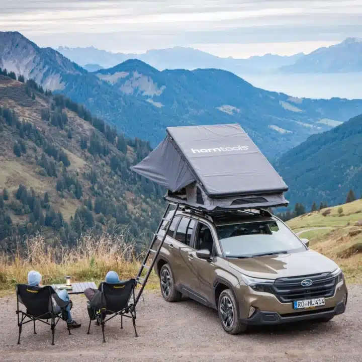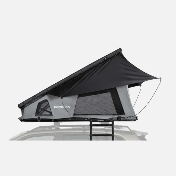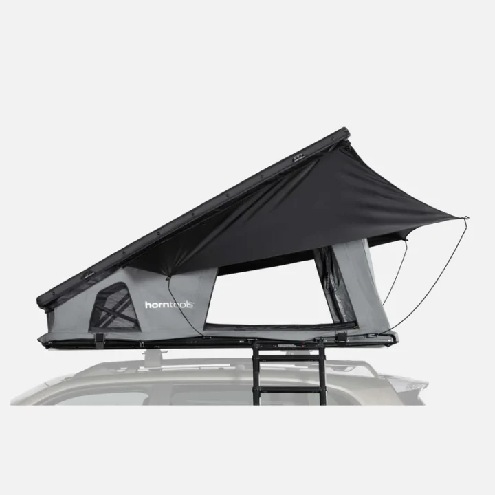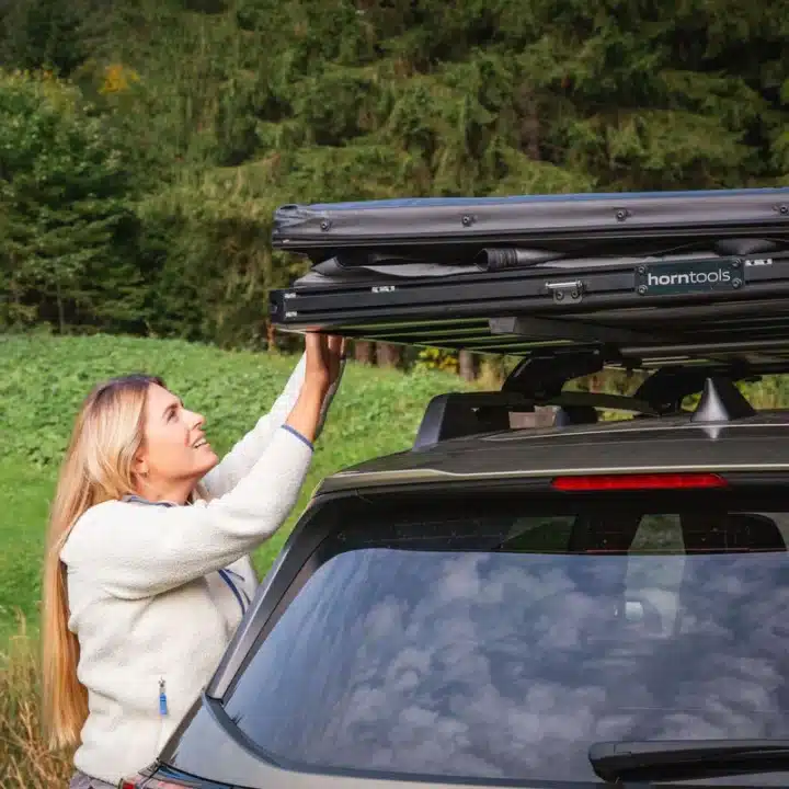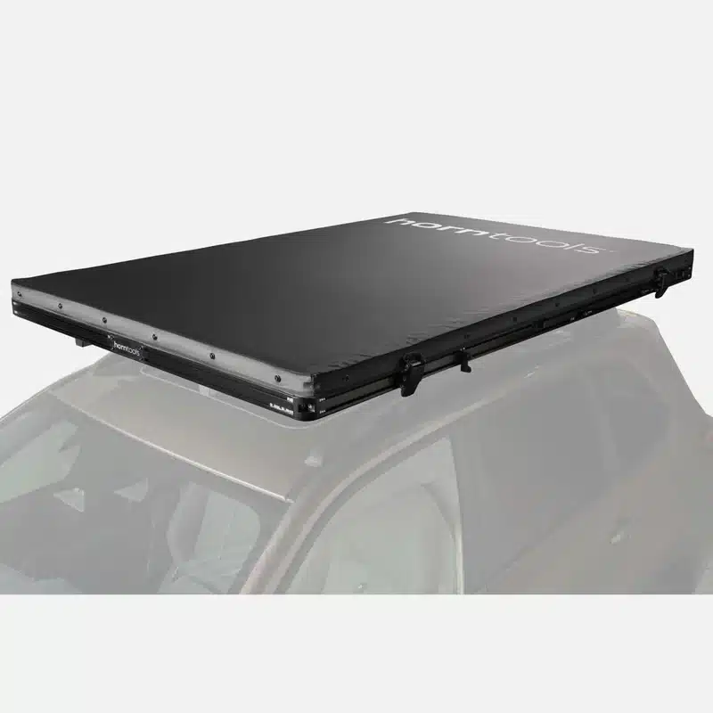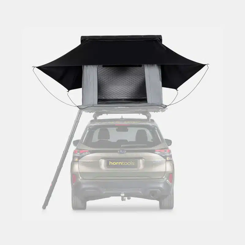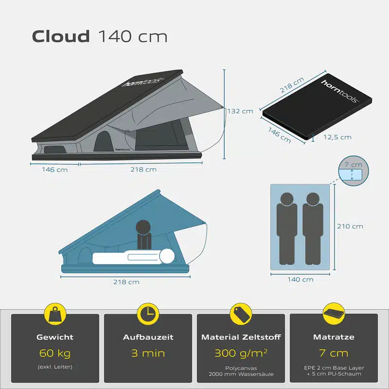 La tenda da tetto horntools Cloud è stata completamente riprogettata per offrire comfort, leggerezza e facilità di montaggio. Con una superficie di 140 cm per dormire comodamente in 2-3 persone e un peso di soli 60 kg, è adatta a quasi tutti i veicoli dotati di portapacchi.