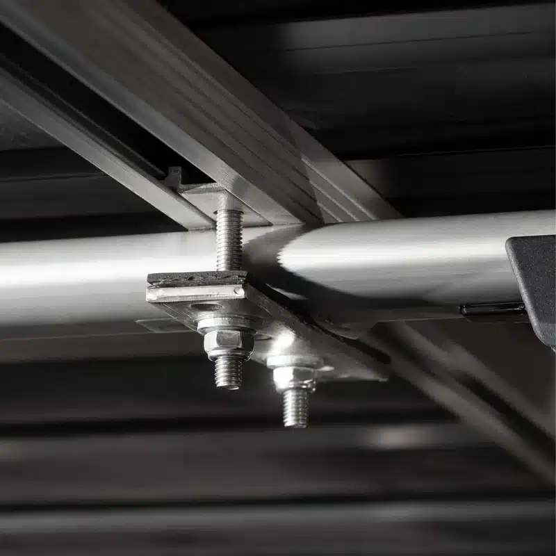 Il montaggio richiede circa 60 minuti e può essere effettuato su quasi tutti i veicoli con portapacchi, incluse le piattaforme ExRoof horntools o barre trasversali di altri produttori. Tutti i componenti e strumenti necessari sono inclusi, escluso il portapacchi.