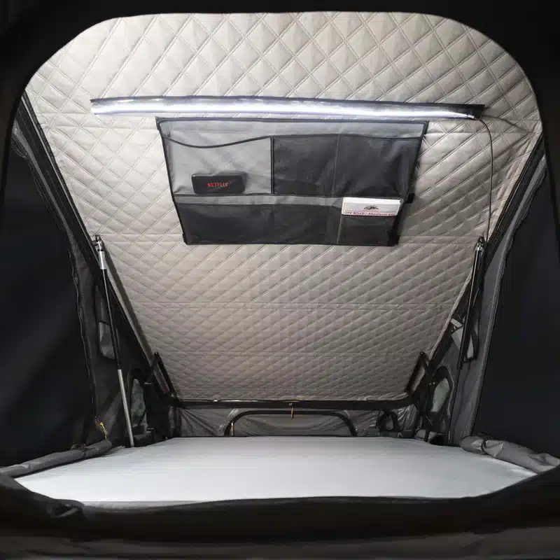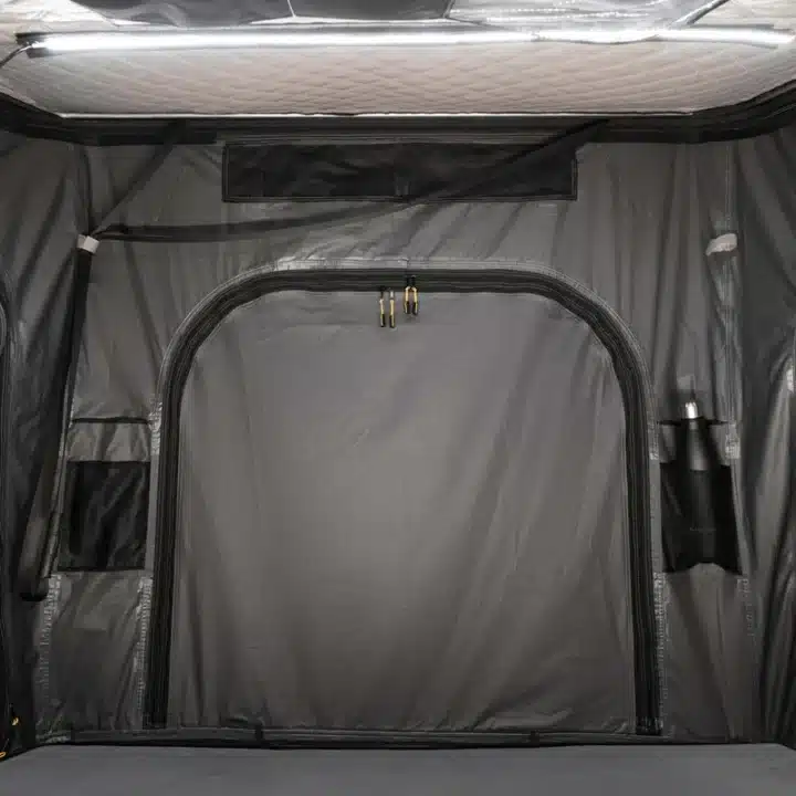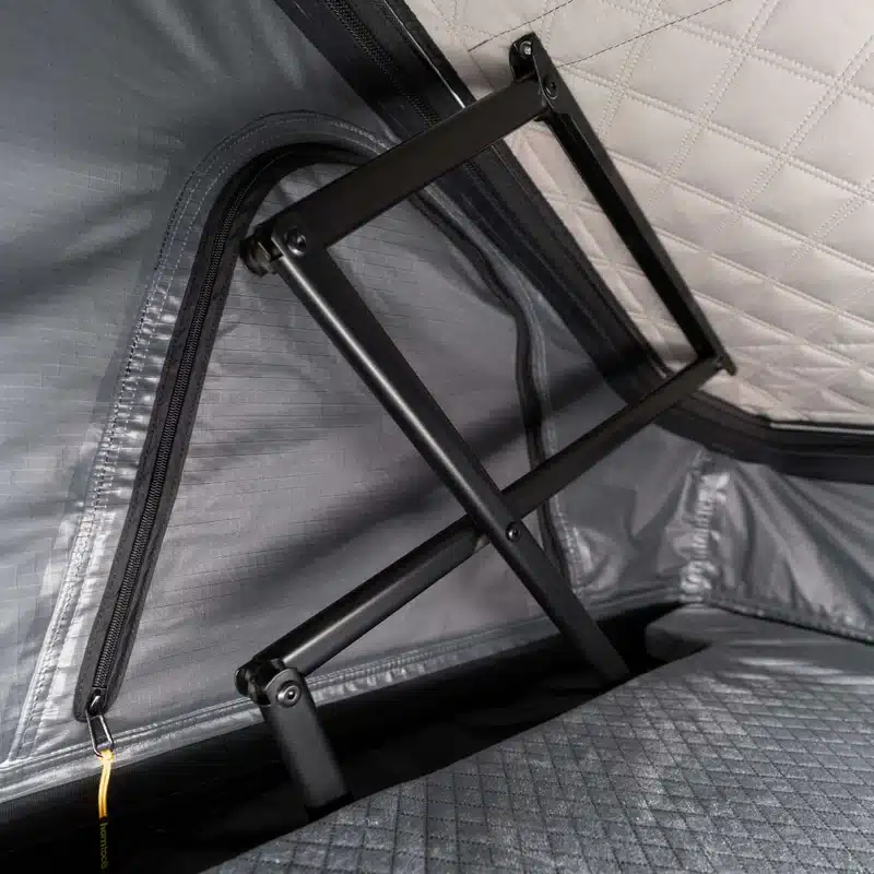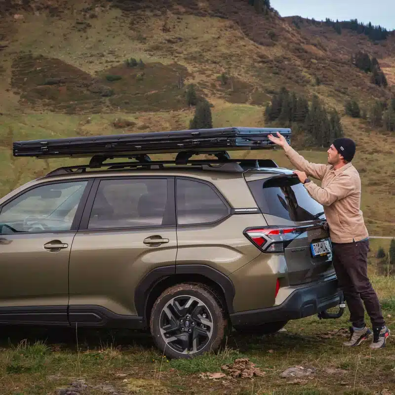 L’altezza da chiusa di soli 12,5 cm riduce resistenza all’aria e rumore del vento, mentre l’apertura in meno di 3 minuti e la struttura in alluminio garantiscono affidabilità e durata. Ideale per viaggi in campeggio, overlanding o avventure su strada.