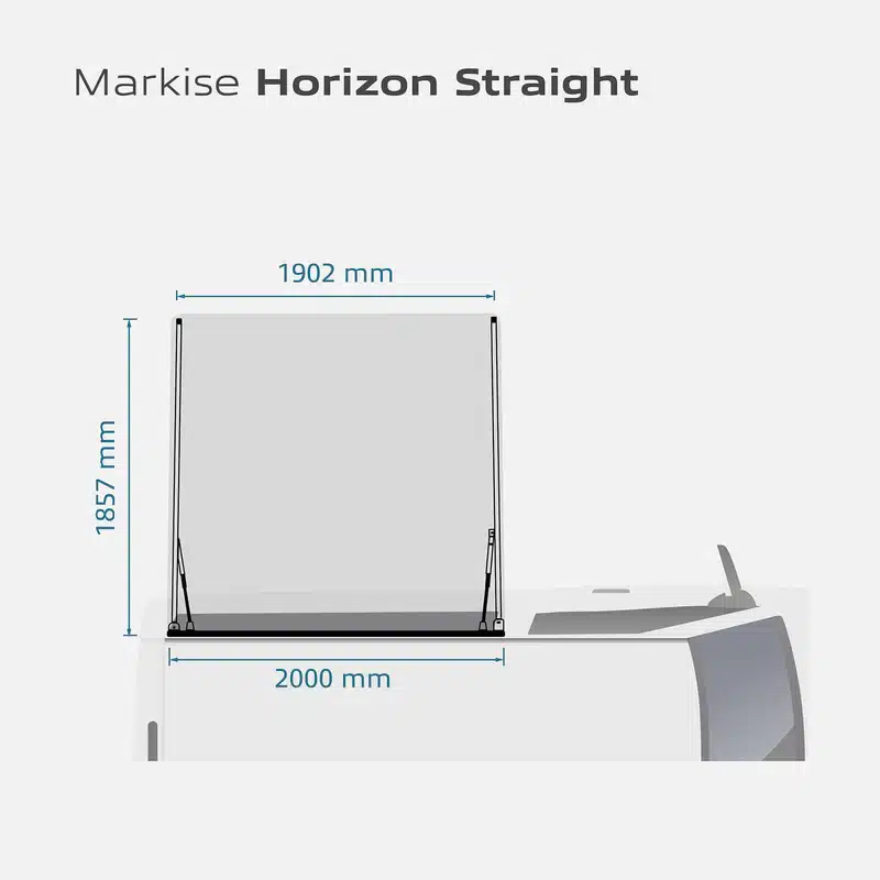 Con un peso complessivo di 13,4 kg, incluso il set di supporti, il tendalino Horizon Straight è estremamente maneggevole. Il telaio robusto e i materiali di alta qualità garantiscono durata e affidabilità anche in utilizzi off-road.