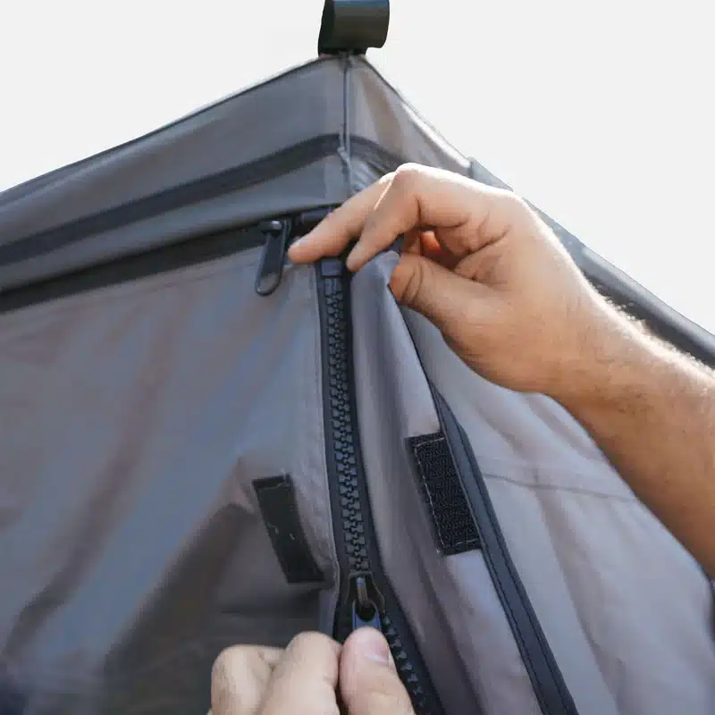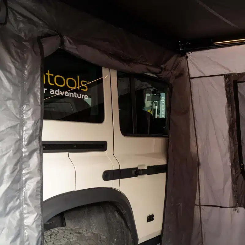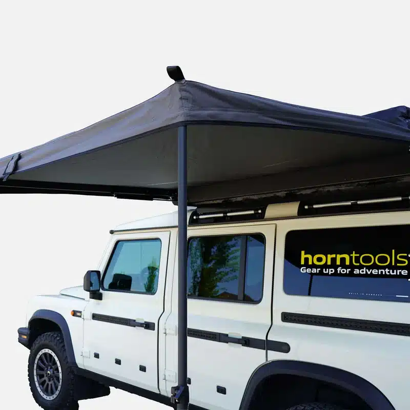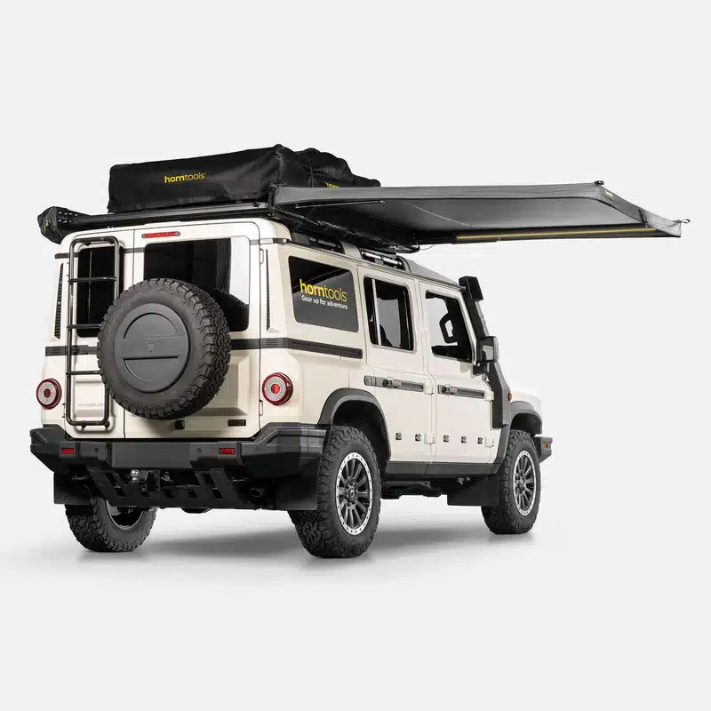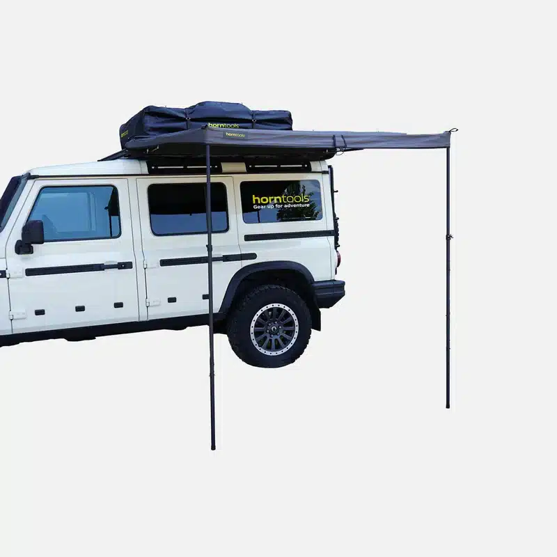 Progettato per overlanding, campeggio e uso quotidiano, offre una protezione affidabile contro sole e pioggia. Con un peso di soli 13,4 kg, è uno dei tendalini autoportanti più leggeri sul mercato, perfetto per veicoli con tenda da tetto e portapacchi.
