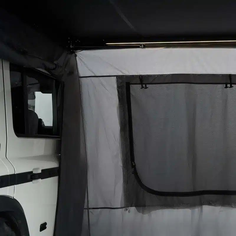 Il tendalino è disponibile con o senza pareti laterali opzionali, per adattarsi a ogni esigenza di viaggio.