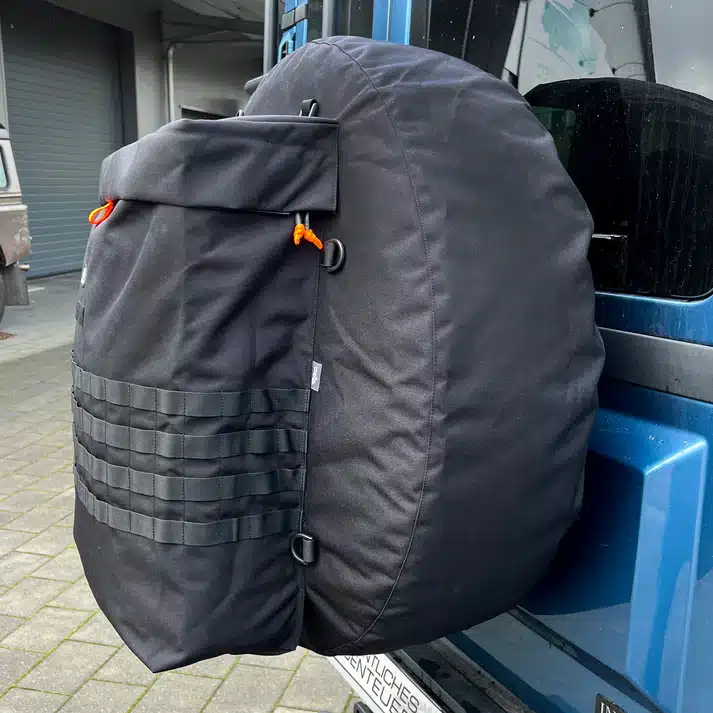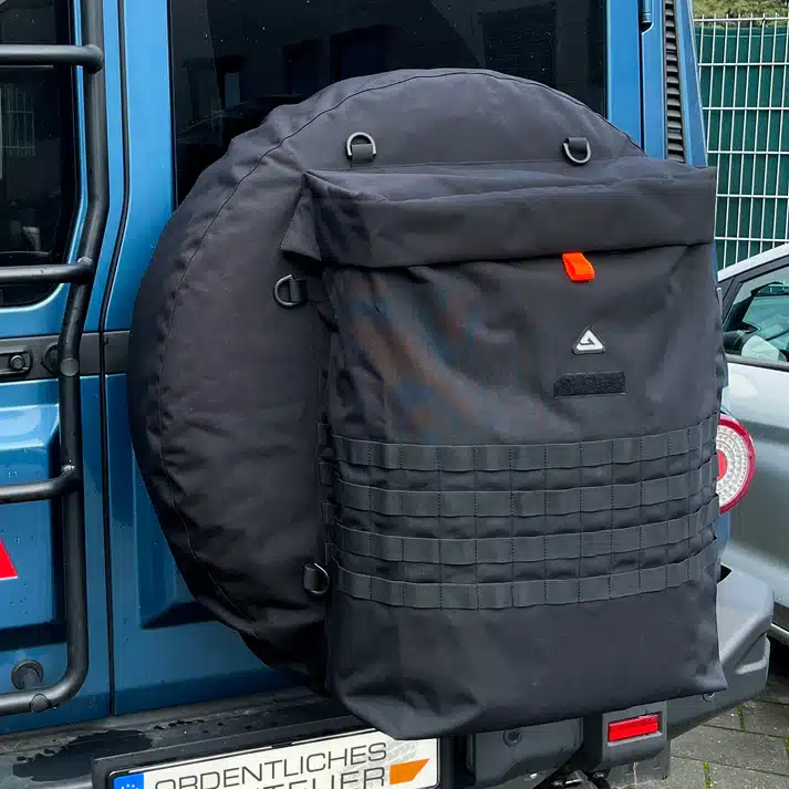 La copertura per ruota di scorta con tasca esterna protegge la ruota di scorta da pioggia, sole e sporco – perfetta per camper, van e veicoli fuoristrada. Realizzata in Europa con materiali di alta qualità (poliammide 6 / poliestere), garantisce un’eccellente protezione contro le intemperie e una lunga durata nel tempo.