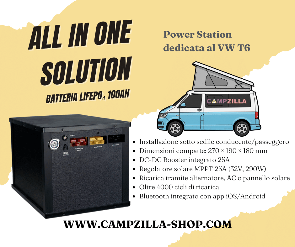 La Power Station VW T6-Box è la soluzione energetica compatta e completa pensata per chi viaggia in camper e desidera autonomia, sicurezza e prestazioni elevate.