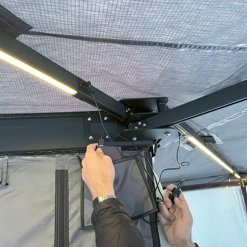 Il sistema di apertura intelligente permette di montare il tendalino in meno di tre minuti. Tutte le componenti sono studiate per garantire praticità e velocità, anche in condizioni ambientali difficili.