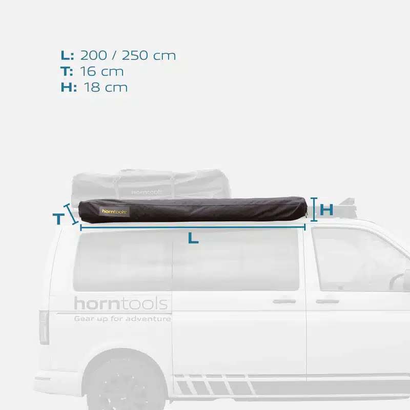 Il tendalino Horizon è compatibile con il portapacchi ExRoof di horntools e con la maggior parte dei portapacchi presenti sul mercato.