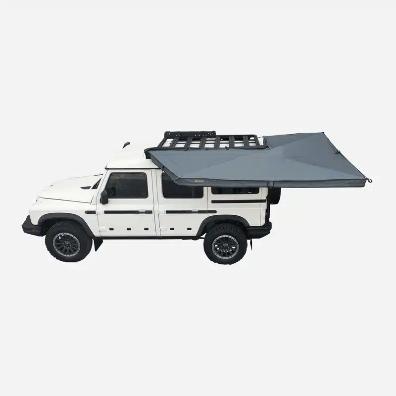 Con un peso di soli 18,95 kg, il tendalino 270° Horizon è estremamente leggero, senza rinunciare alla solidità. Il telaio in alluminio rinforzato è progettato per resistere alle sollecitazioni tipiche dell’uso off-road e overland.